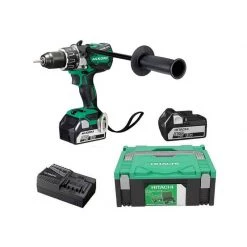 La DV 18 DGAL est une perceuse visseuse à percussion de 18V équipée de batteries Li-ion. Avec son couple de serrage de 70 Nm. Cette perceuse Hikoki (Hitachi) vous permet de réaliser de nombreux travaux, avec une capacité de perçage de 38mm pour le bois et de 13mm pour le béton et l’acier, autant dire de très bonne performance pour une perceuse sans fil de seulement 1,6 kg.