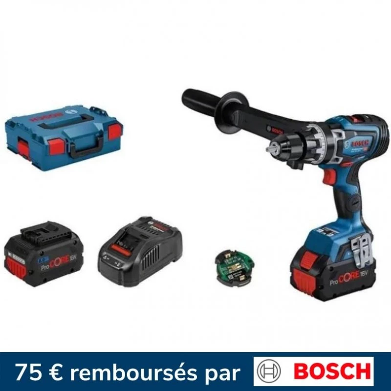 Équipées d’un moteur sans charbons puissant et de batteries ProCORE 18V, la perceuse visseuse à percussion sans fil Bosch offre à l’utilisateur, une progression de travail extrêmement rapide. Maîtrise parfaite lors de chaque étape de travail grâce à la fonction KickBack Control désactivable qui réduit le risque de réactions de couple dans les situations de blocage.