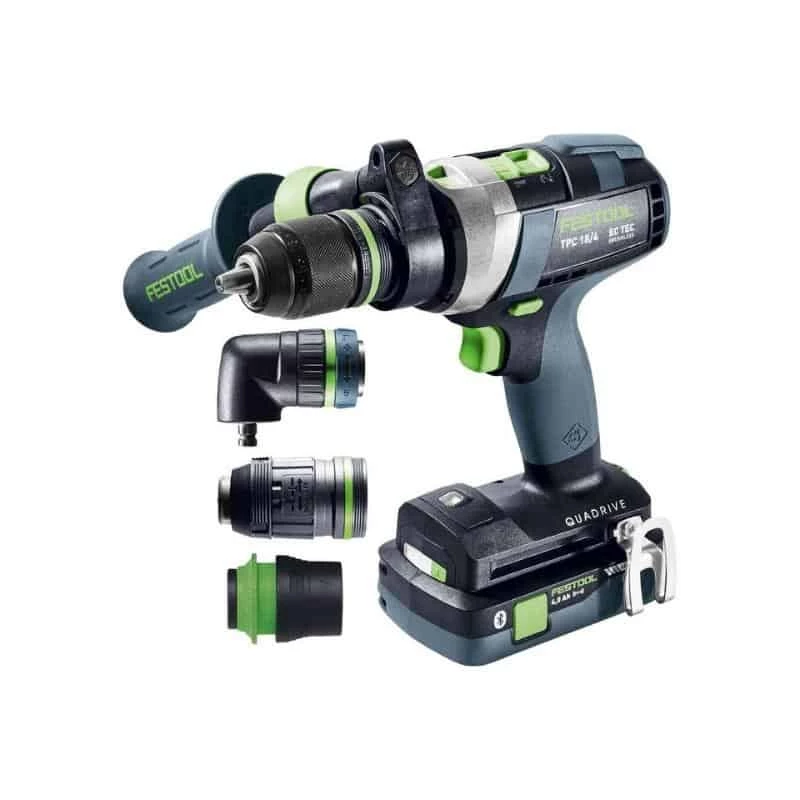 Dotée d’une boîte de 4 vitesses, la perceuse visseuse à percussion TPC est très puissante et polyvalente. Avec ses 4 vitesses, le QUADRIVE couvre tous les cas de figure, c’est-à-dire du vissage à un couple de 50 Nm, en 1re vitesse, au perçage précis à 3600 tr/min, en 4e vitesse. Le réducteur métallique à 4 vitesses de l’outil est très solide et possède une couverture complète grâce à la vaste gamme de prestations Festool Service.