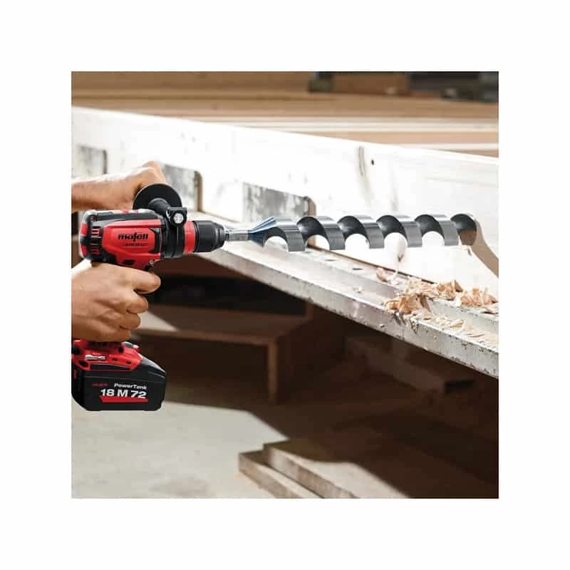 L‘A 18 M bl et l‘ASB 18 M bl avec poignée supplémentaire maîtrisent sans peine le perçage du bois avec une mèche torse de 50 mm.
