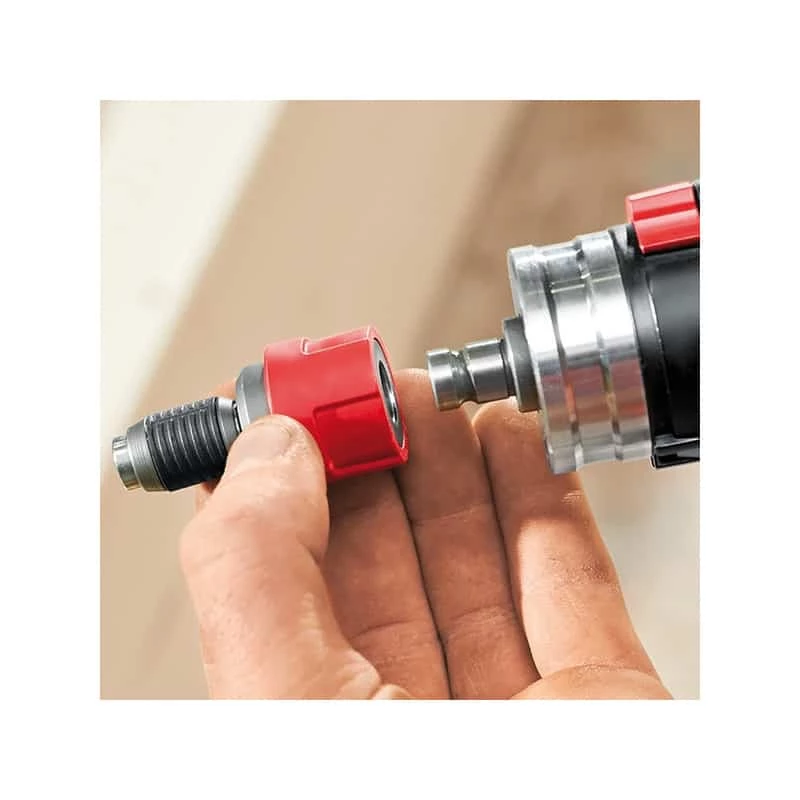 Remplacement du porte-embout, du mandrin et de l‘adaptateur angulaire en l‘espace de quelques secondes: aucun problème avec le système de changement rapide intelligent: Retirer, insérer, c‘est tout.