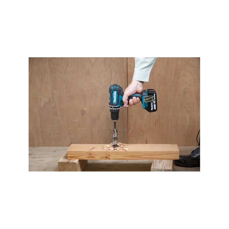 Rapide et compacte, la perceuse visseuse à percussion DHP 482 RTJ de Makita convient parfaitement pour les travaux courants de perçage.