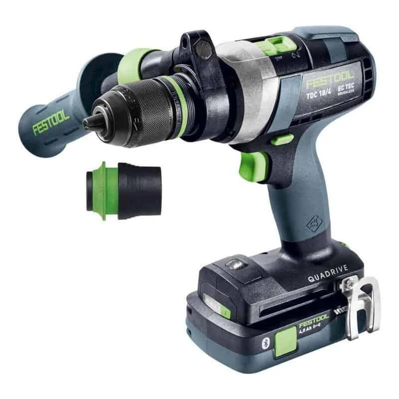 Puissante, polyvalente et dotée de 4 vitesses, la perceuse visseuse QUADRIVE de Festool couvre de nombreuses applications. La perceuse visseuse sans fil TDC est dotée d’un moteur EC-TEC sans-charbons offrant force et endurance extrême dans vos travaux sur le bois et le métal.